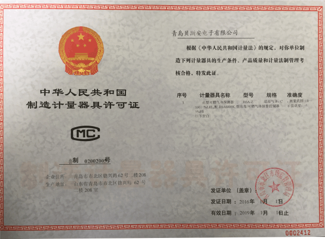 我公司是青島市具有國家質量技術監督部門頒發的計量器具生產許可證的生產企業;獲得國家防爆電氣產品質量監督檢驗中心頒發的防爆合格證;獲得國家公安部消防產品合格評定中心頒發的消防產品形式認可證書。